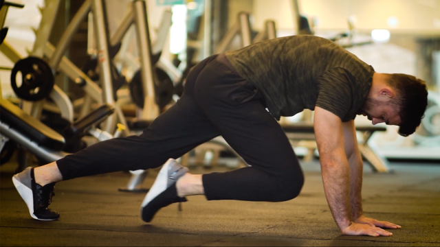 Film instruktażowy jak prawidłowo wykonać ćwiczenie wspinaczkę górską (mountain climber).